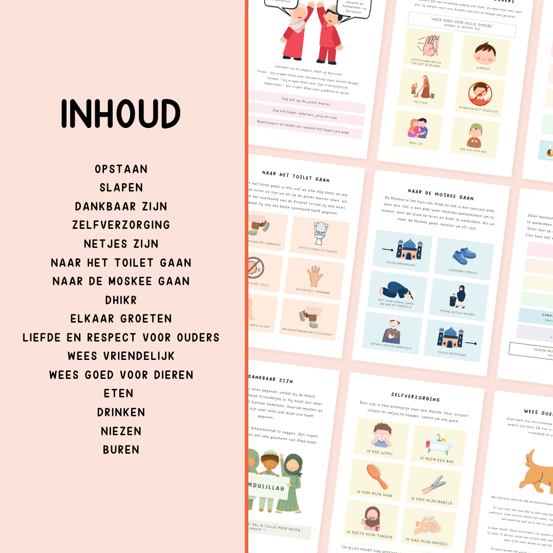 Perfect voor ouders die hun kinderen op een speelse manier willen helpen groeien in goede manieren en islamitische waarden!